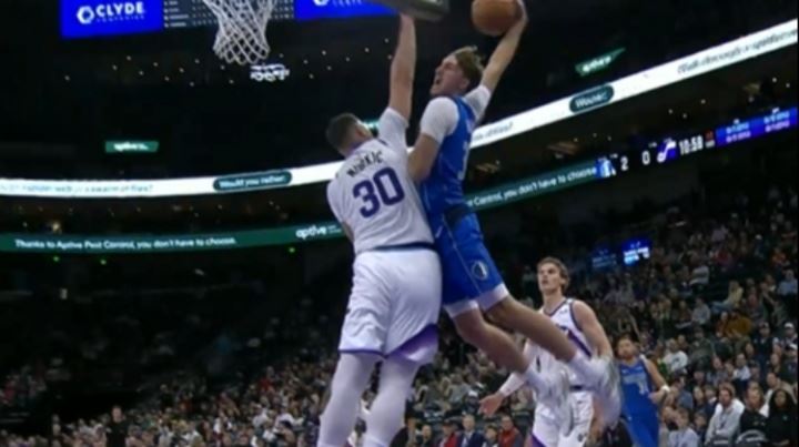 GIF-弗拉格单臂隔扣努尔基奇扣飞但被犯规