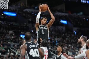 今天NBA常规赛,马刺121-103轻取猛龙。文班出战30分39秒,8投7中,罚球10中10,没有出手三分,砍下24分15篮板4助攻1抢断1盖帽,正负值高达+35。此役过后,文班本赛季场均得分来到了31分。
