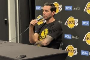 赛前湖人主帅雷迪克穿了一件定制的艾顿球衣出席了新闻发布会,这件球衣正面是艾顿的脸和狮子的图案拼接而成。