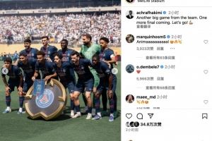 阿什拉夫社媒:又一场精彩表现,还有一场决赛即将到来,加油💪