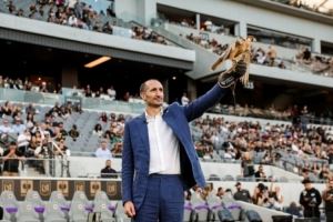 新股东基耶利尼亮相洛杉矶FC主场,化身荣誉“驯鹰师”