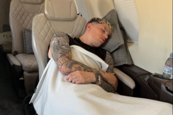 这是去哪儿👀加纳乔晒飞机上睡觉照片,配文:来了