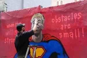 庆祝18岁生日,街头艺术家Tvboy为亚马尔绘制超级英雄壁画