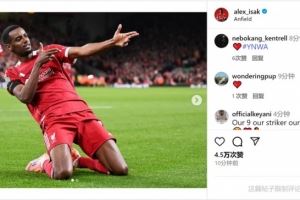 攻入利物浦生涯首球!伊萨克社媒晒比赛照片庆祝