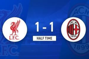 半场-莱奥破门后致敬若塔索博十分角吊射扳平 利物浦暂1-1米兰