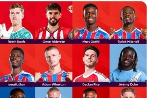 后卫:阿德雷特(桑德兰)、格伊(水晶宫)、米切尔(水晶宫)
