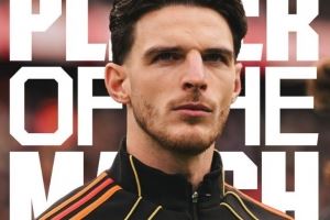 对旧主首开记录,阿森纳官方:赖斯当选战胜西汉姆队内最佳球员
