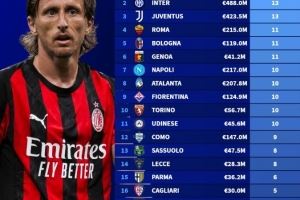 9、佛罗伦萨(10人):总身价1.249亿欧元