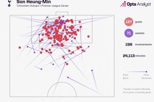 告别!孙兴慜加盟热刺以来在英超参与198球,同期第三多
