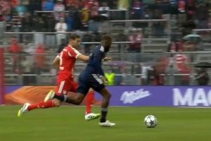第37分钟,拜仁的任意球长传被门将德尚没收。↓