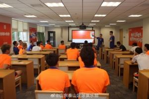 7月9日下午,球队在训练开始前,泰山足校西班牙籍青训总监埃里克在会议室对球队前一天的训练进行复盘总结,并与全体队员分享了训练中的理念、要求和方法,会后到场地配合教练组一起共同完成训练任务。