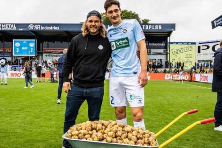 【战利品55kg土豆】 丹麦超级联赛Sønderjyske在3-2战胜FC Nordsjælland的比赛中,全场最佳球员的奖品是一整袋55kg的土豆!